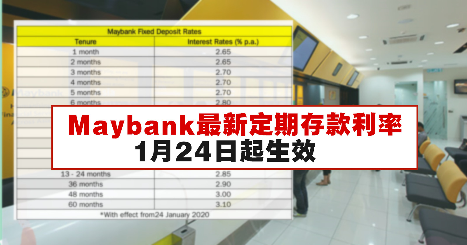 Maybank最新定期存款利率 1月24日起生效 Winrayland