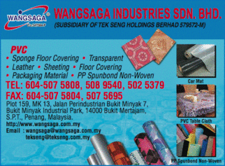 Wangsaga industries sdn bhd in bukit mertajam malaysia offers ethnic wear fabrics. In 1997 it has started its own manufacturing facilities in response to the malaysia s call for the encouragement of trade liberalisation among asean countries after 2003. Wangsaga industries sdn bhd experts in manufacturing and exporting we are manufacturer pvc flooring pvc tranparent sheet and 14 more products.